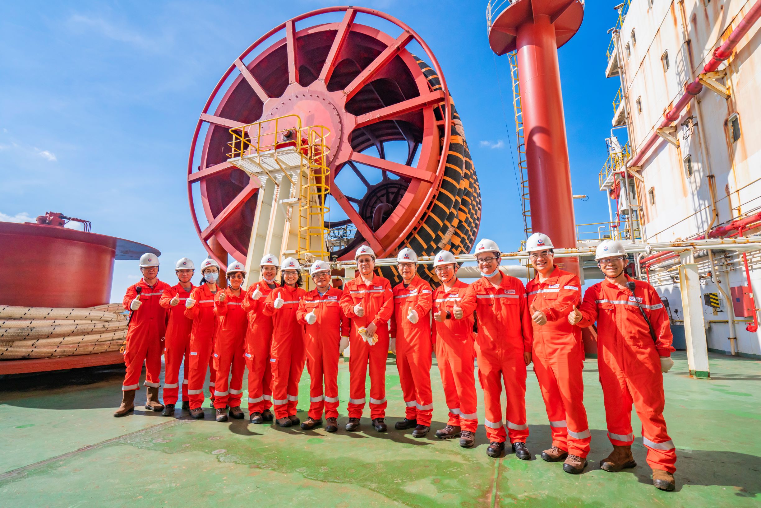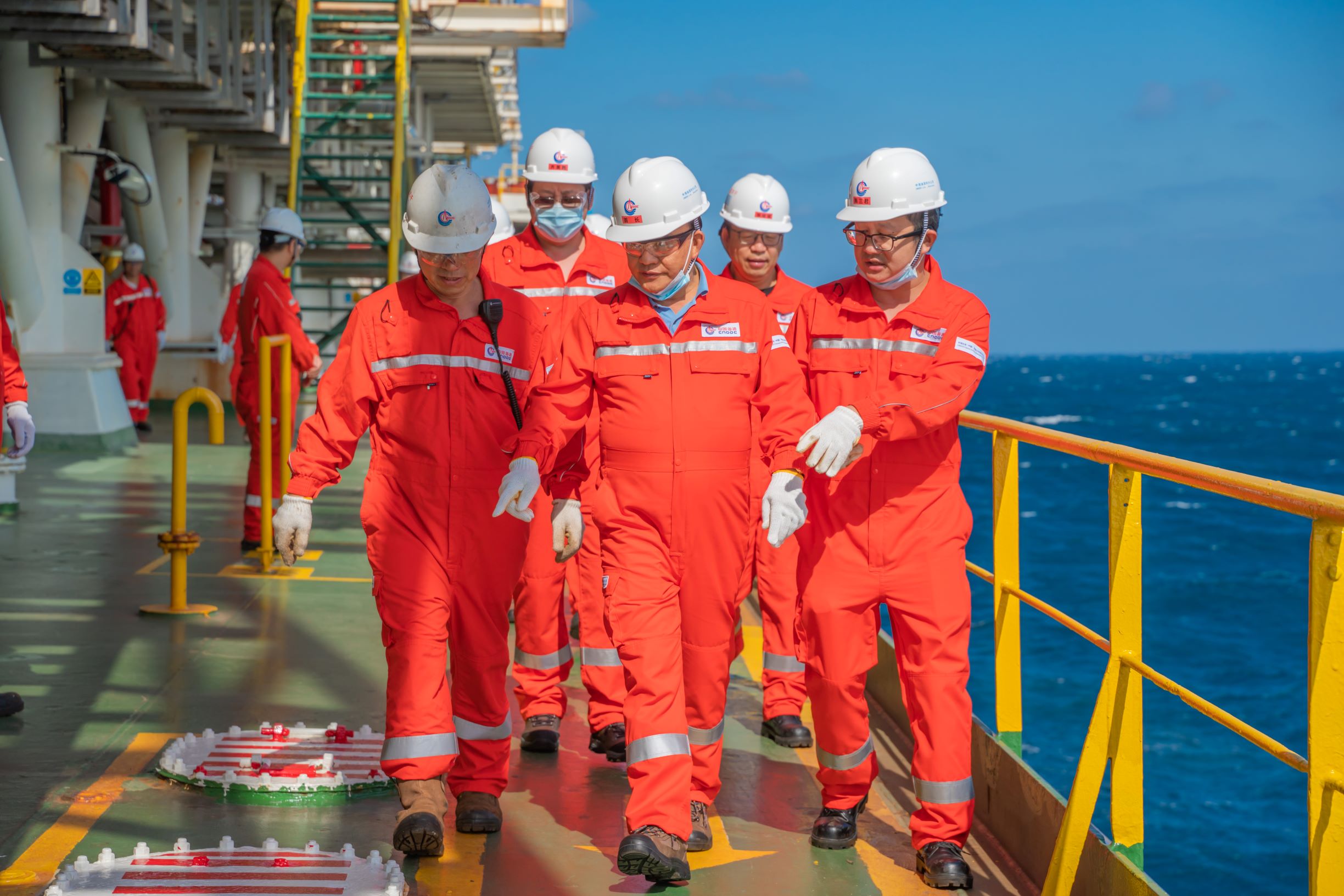 禹云益主席赴中国海油南海东部油田考察调研合影留念