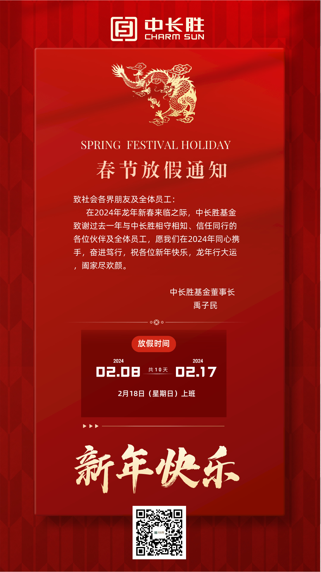 中长胜基金春节放假通知