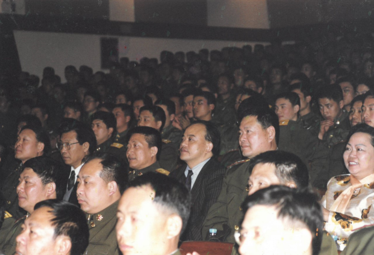 禹主席与驻澳门部队司令员朱庆生在开业仪式上 禹主席与刘粤军、政委张阳一起观看演出