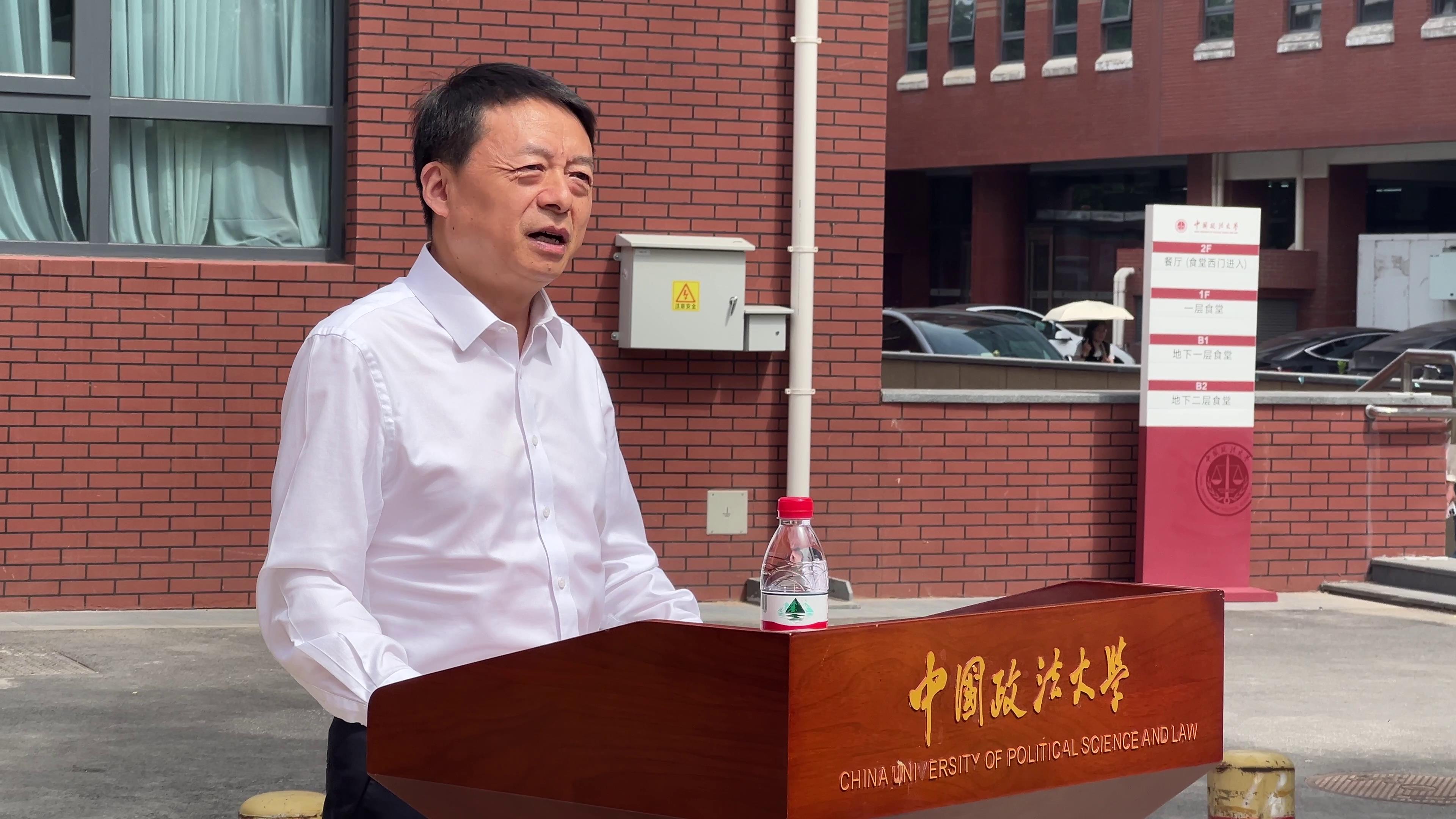 校长马怀德代表学校对禹云益主席一行的到来表示热烈欢迎,对禹云益主席支持表示感谢。他向在场师生介绍了学校与禹主席多年间深厚的友谊及禹主席对政法大学慷慨的支持与帮助。禹主席是2009年政法大学第一届校董会成员,从2010年9月就一直对政法大学建设发展事业提供帮助,特别是疫情期间,捐赠了10万个口罩,与法大师生一道携手并肩、共克时艰。这些年陆续捐赠1700万元,今日所支持的“禹云益楼”,是政法大学仅有的两栋冠名楼宇,另一栋位于昌平学区的逸夫楼。校长马怀德对于禹云益主席的公益举措表示崇高的敬意,并对其关心和支持学校事业发展表示衷心感谢。