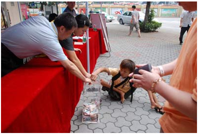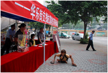 昨(2008年5月19日)日下午,记者与一名不愿透露姓名的知情街坊取得联系。经对方确认,照片中的场景正是上周五下午发生在广州越秀区华乐街支援抗震救灾募捐活动现场的一幕。