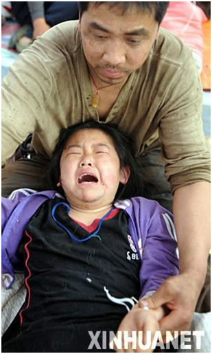 5月13日,在四川绵竹县汉旺镇,一位失去女儿的母亲在痛哭。 新华社记者 李晓果