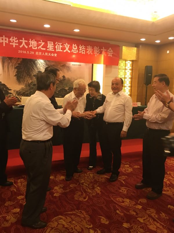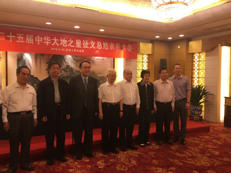 五月的北京,阳光灿烂、鲜花盛开。灯光辉煌的北京人民大会堂北会议厅爆发出一阵热烈掌声,周铁农副委员长、刘吉部长、禹云益主席等领导会见参会的代表并合影留念。这是2016年5月29日上午9时,第25届中华大地之星征文总结表彰大会的一个场景。